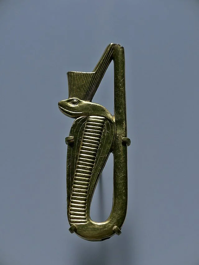 Nearly all the pharaohs had a uraeus on their ceremonial and military headdresses. The raised snake was thought to be a representation of the goddess Wadjet, protector of Lower Egypt. She was accompanied by Nekhbet, the vulture goddess in charge of protecting Upper Egypt.
